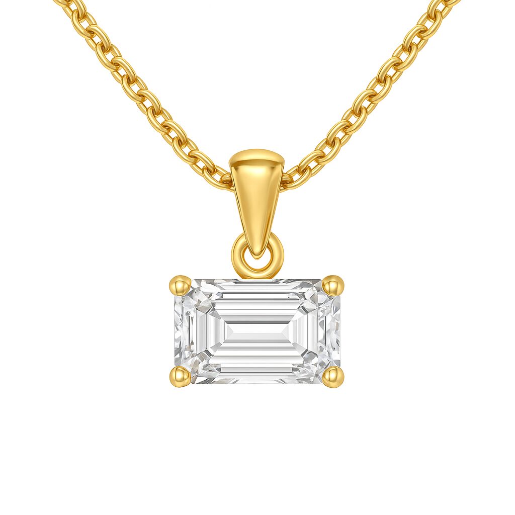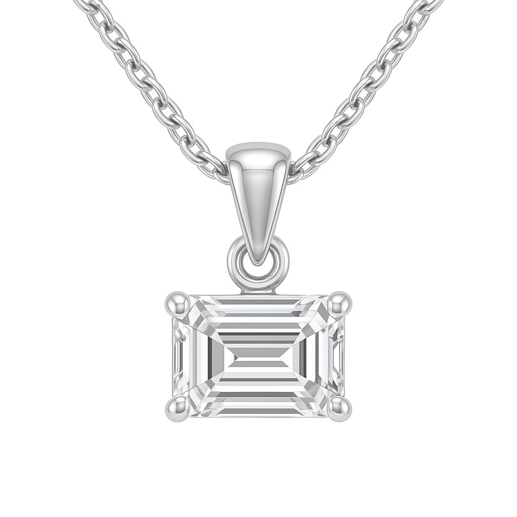 Modern and refined. This necklace features a 1.50ctw lab grown emerald cut diamond, set in an east-west orientation within a classic pendant and suspended from a fine chain. The step-cut facets create a mirror-like brilliance for a sleek, contemporary look.