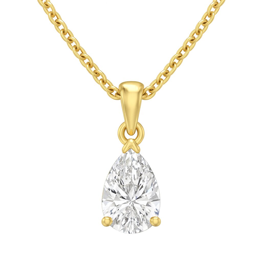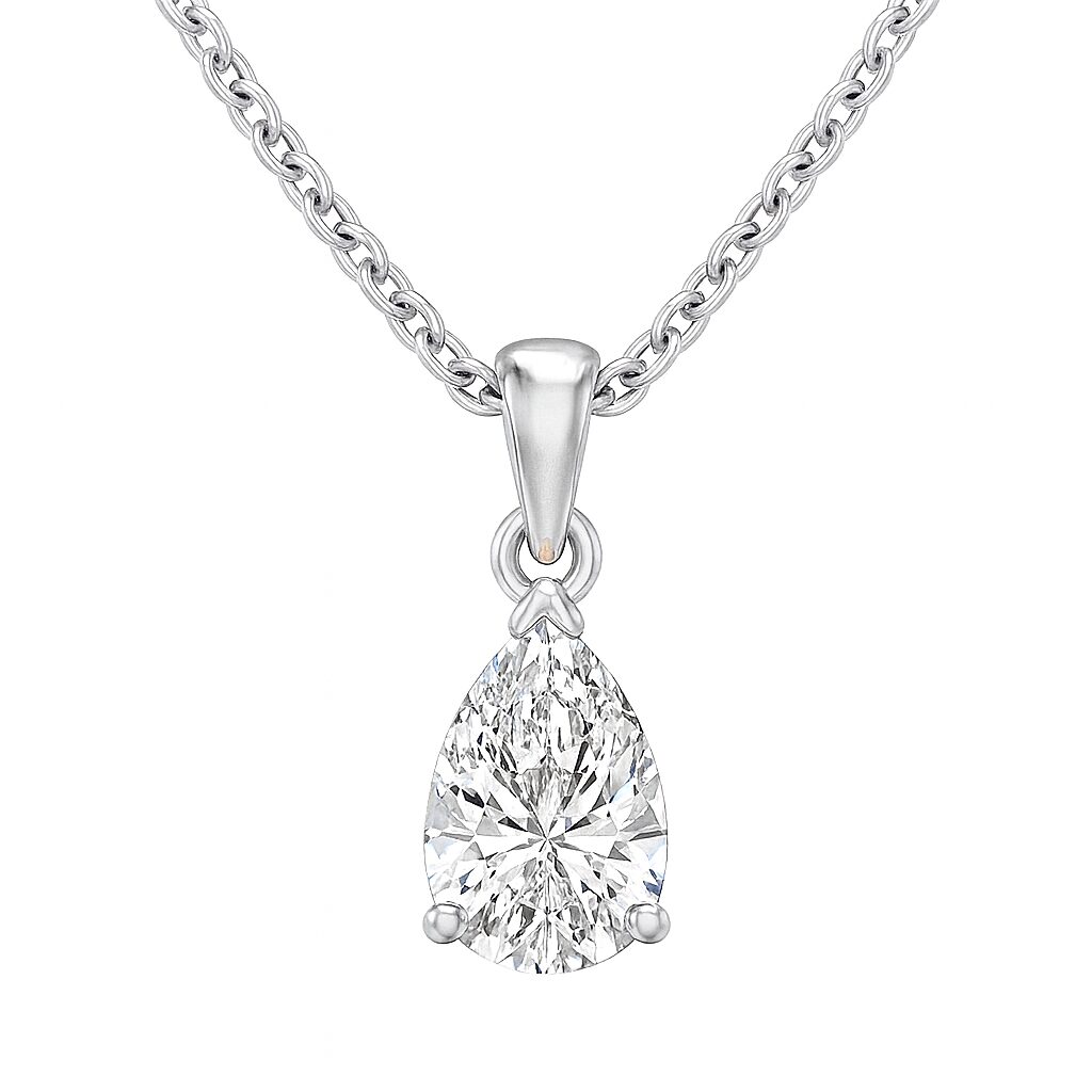 Graceful and versatile. This necklace features a 1.50ctw lab grown pear cut diamond, set in a north-south orientation within a classic basket pendant and suspended from a fine chain. The teardrop shape sparkles with soft brilliance, making it perfect for both everyday wear and special occasions.