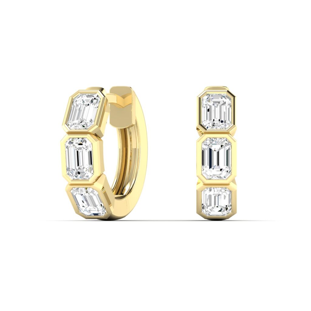 A sleek design with striking detail. These huggie earrings feature 1.20ct total weight of lab grown emerald cut diamonds, each securely wrapped in a refined bezel setting. The bold geometry of the emerald cut pairs perfectly with the clean lines of the bezel, creating a look that’s modern yet timeless. Comfortable and versatile, these huggies are designed for everyday elegance.