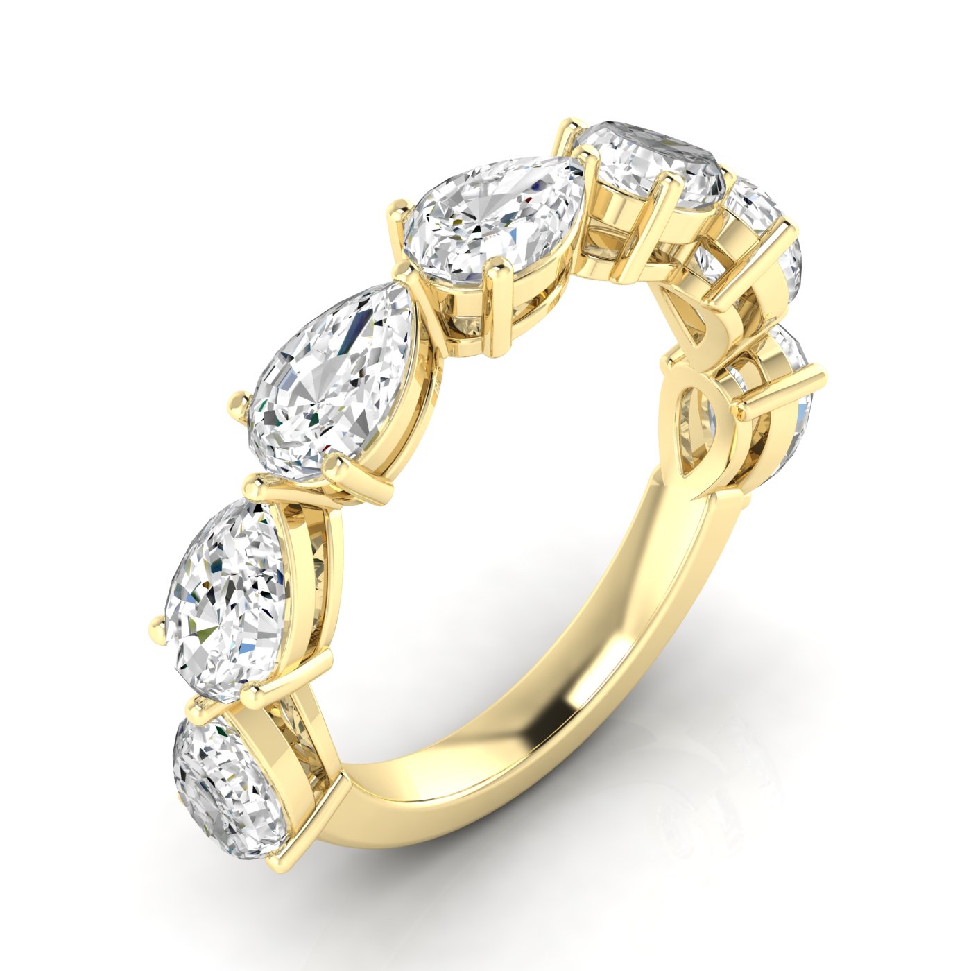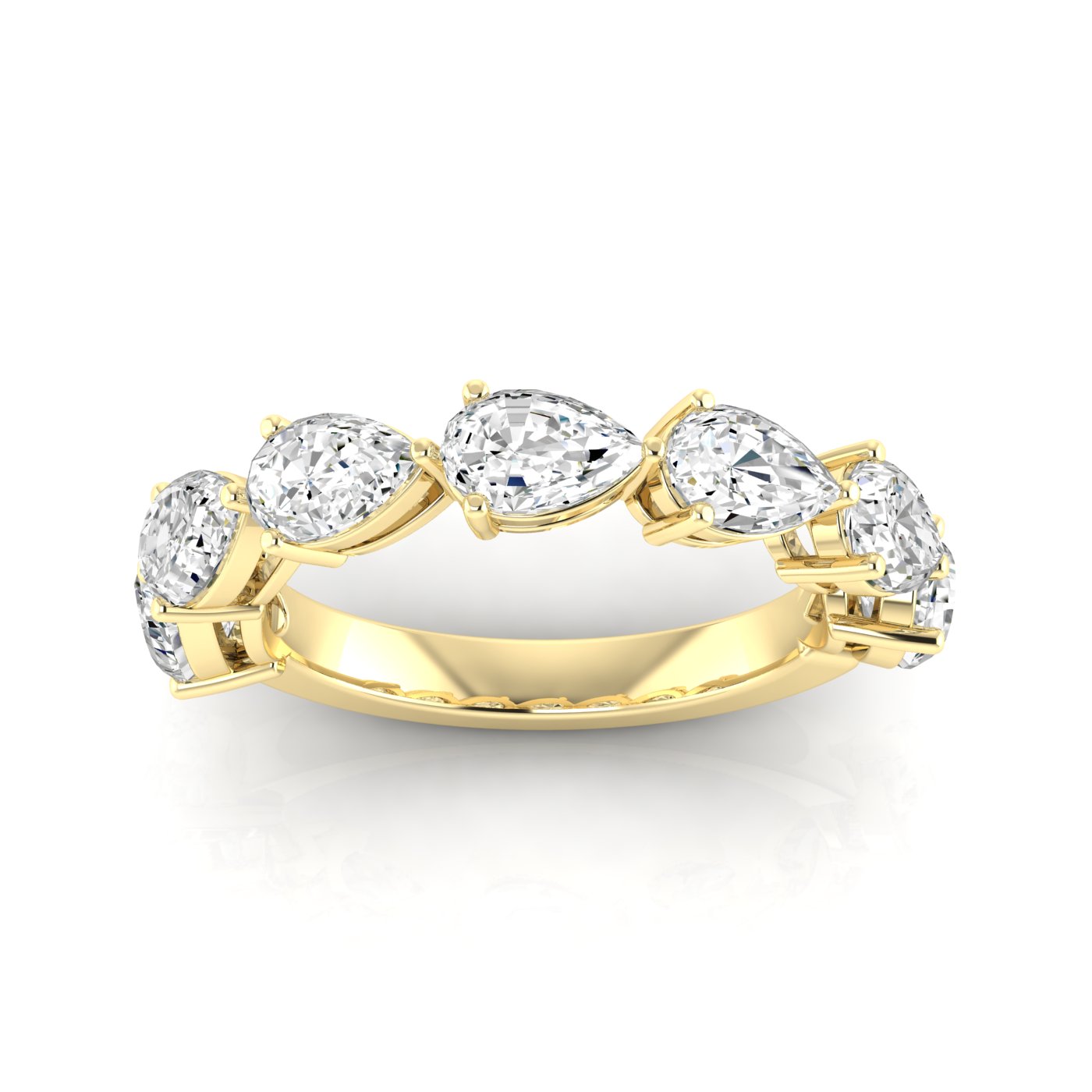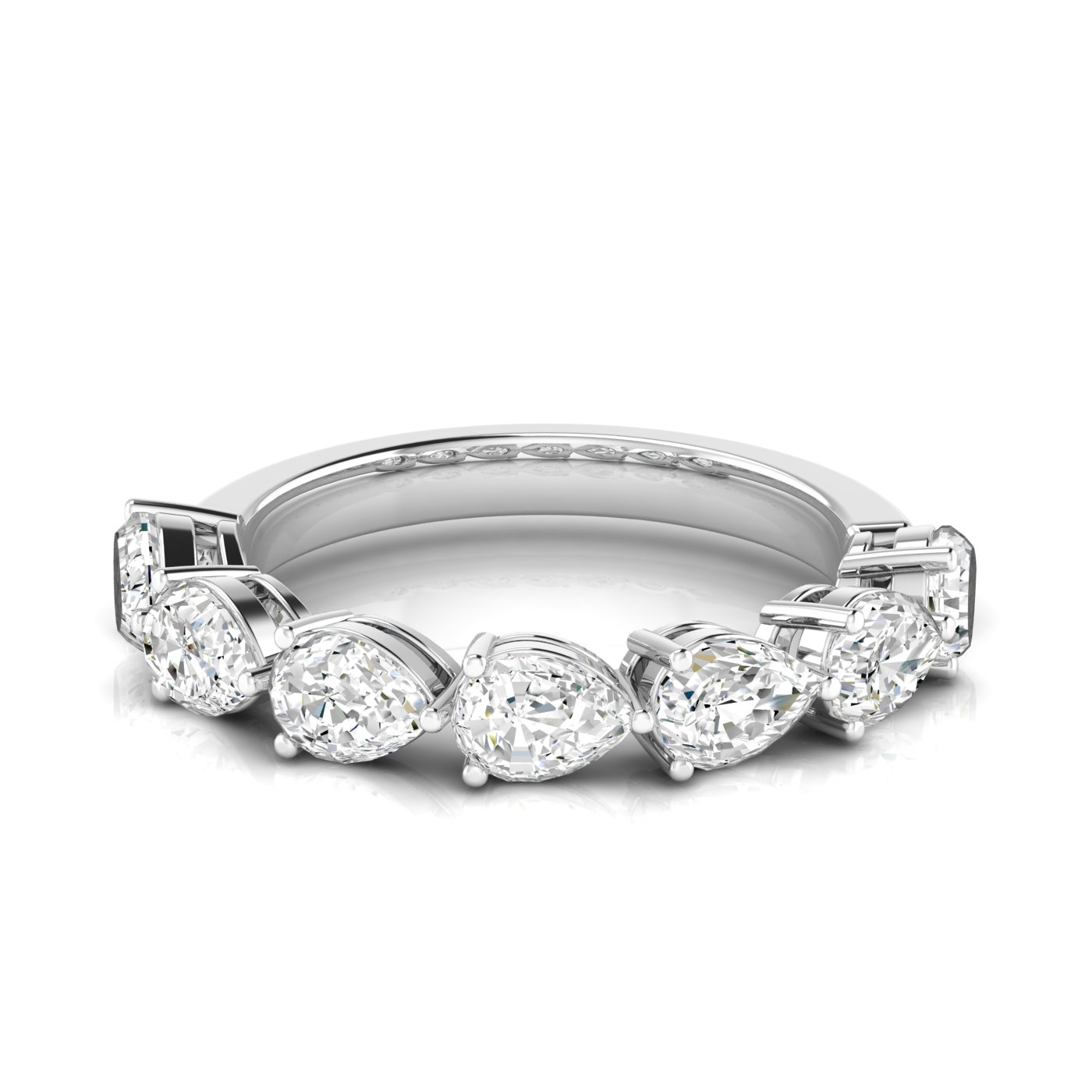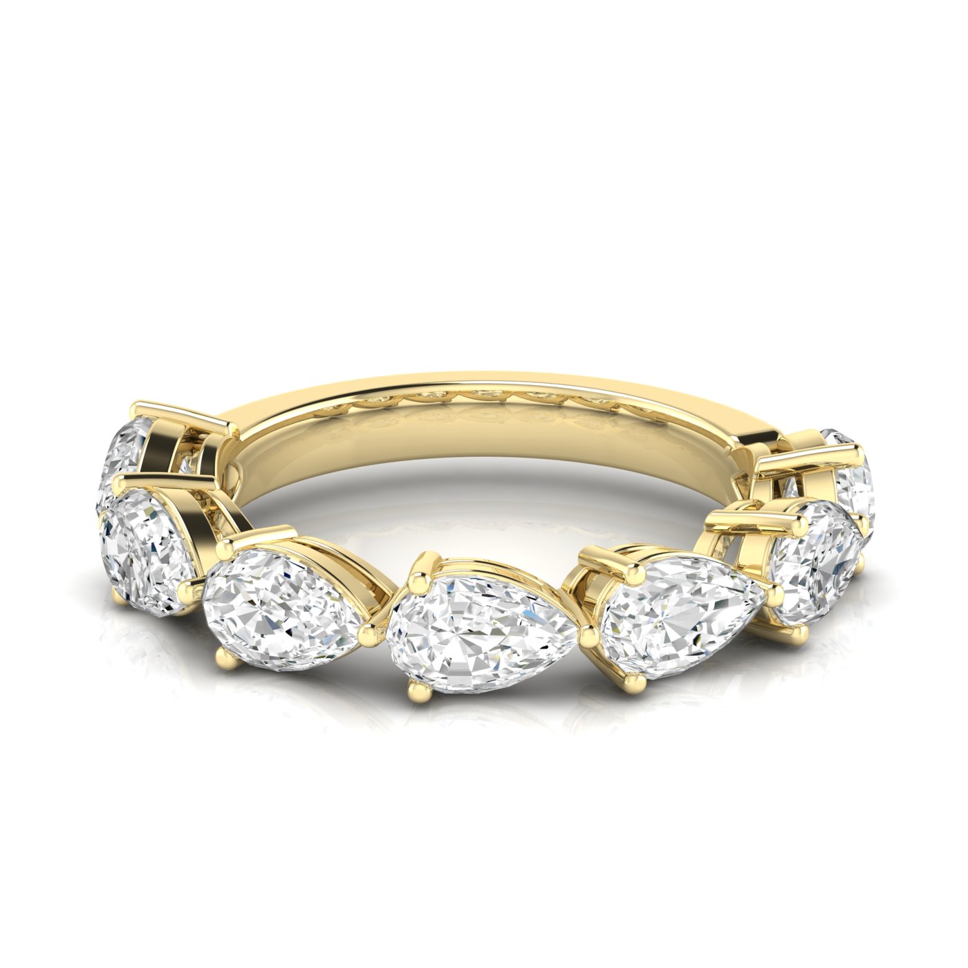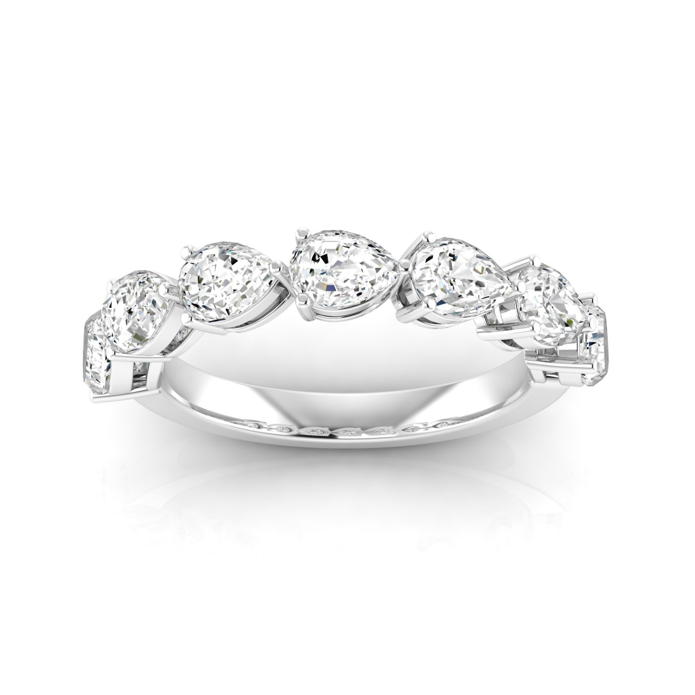 Elegant and distinctive. The Half Eternity Pear Band showcases 1.50ctw of lab grown pear cut diamonds, prong set halfway around the band. The teardrop shape of each diamond creates graceful sparkle, making this band a refined choice whether worn alone or stacked with other rings.