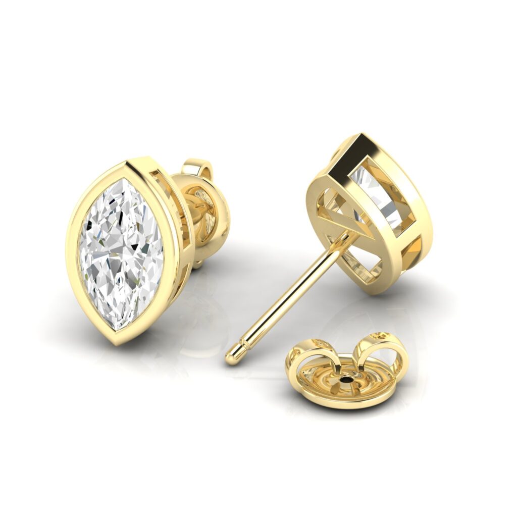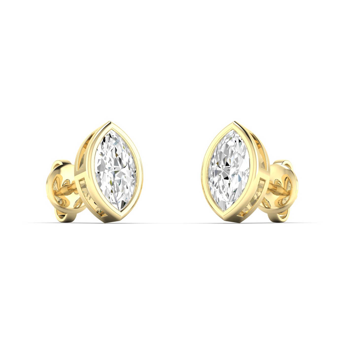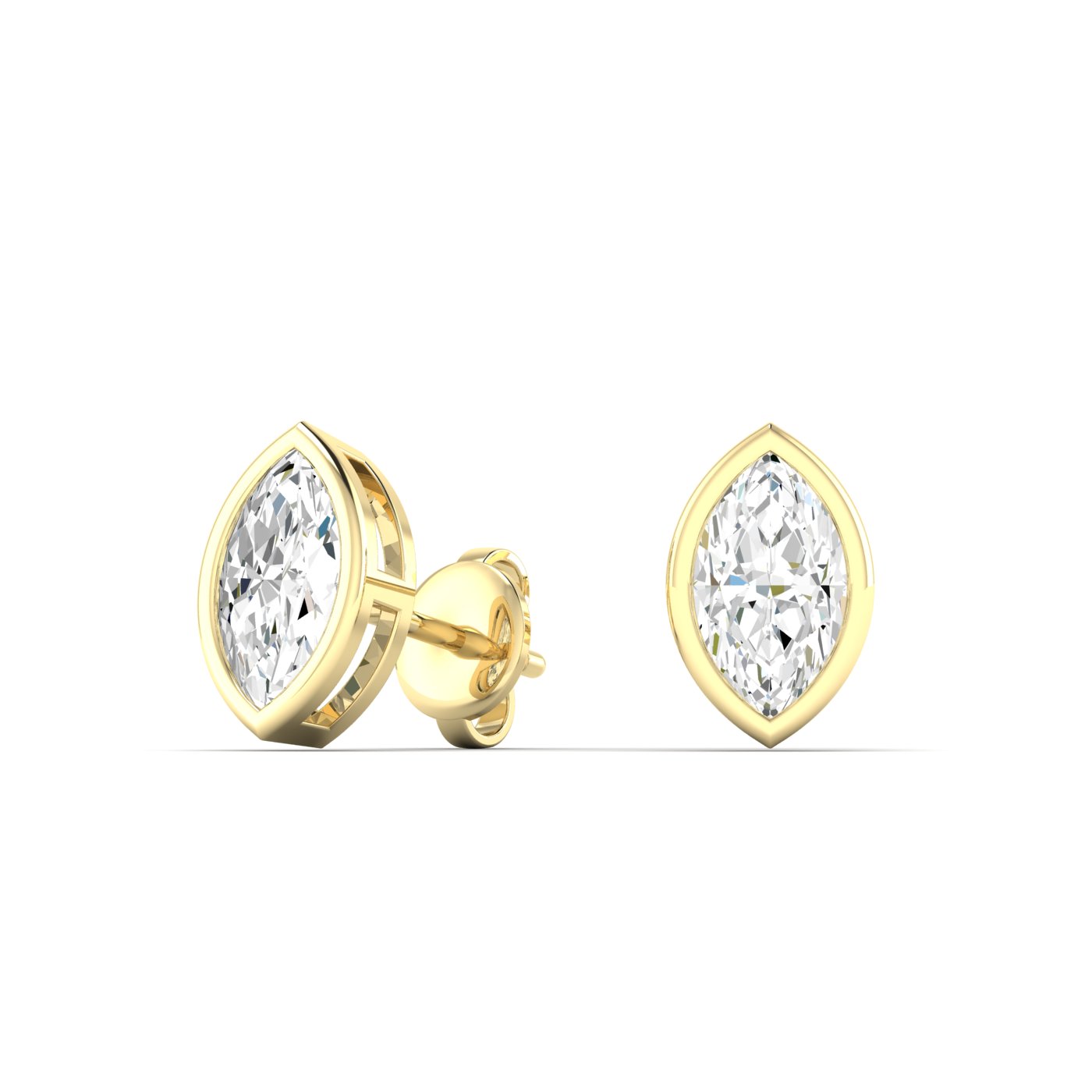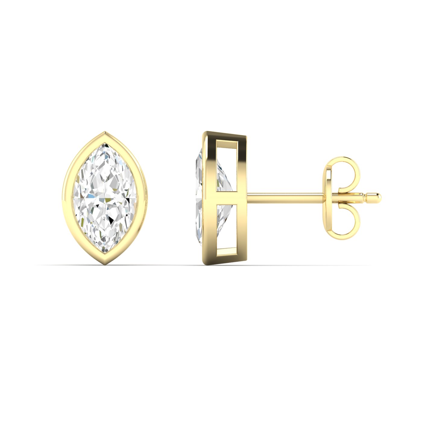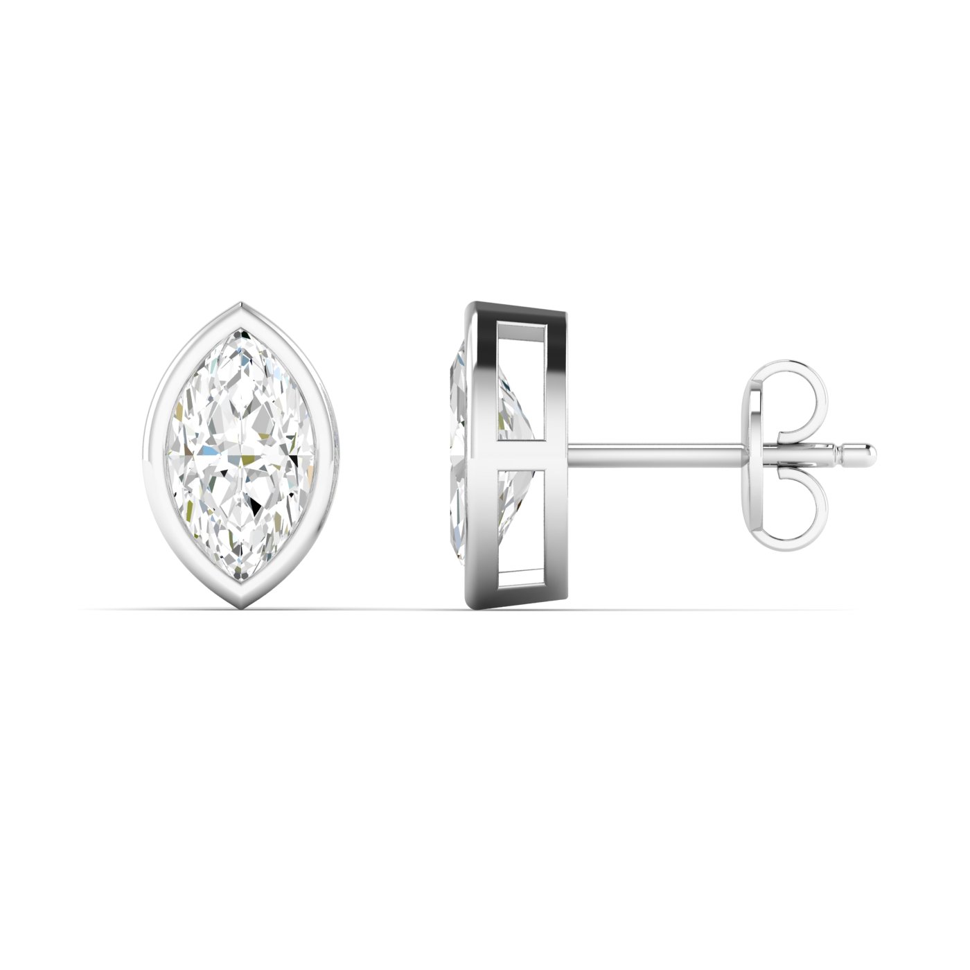 A modern take on timeless elegance. These earrings feature 1.00ct total weight of lab grown marquise diamonds, securely wrapped in a sleek bezel setting that highlights the stone’s elongated silhouette. The clean lines of the bezel add a contemporary edge, while the brilliance of the marquise cut brings classic sparkle.