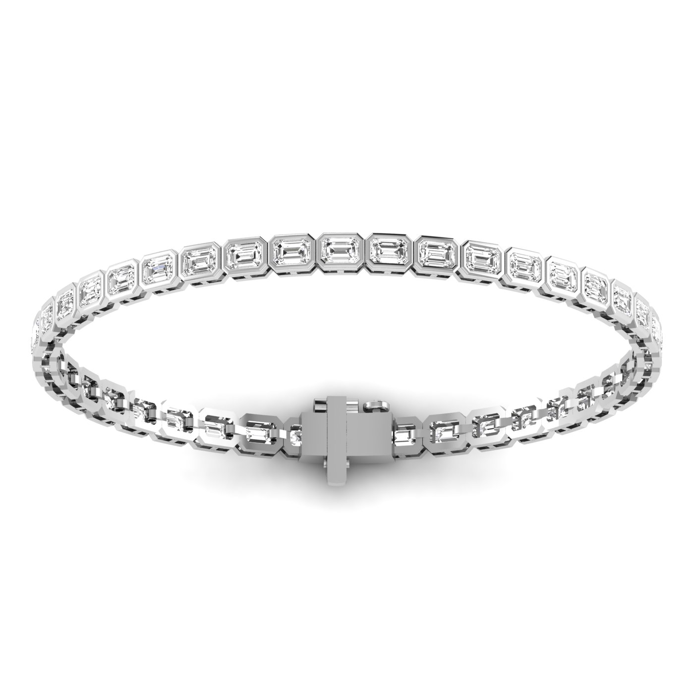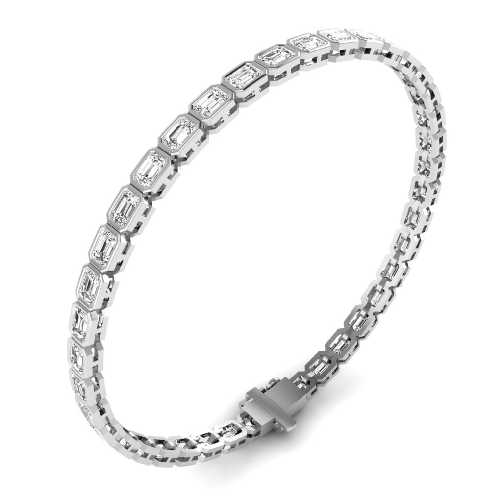 A modern classic, the Multi Emerald Bezel Bracelet features a series of bezel-set lab grown emerald-cut diamonds totaling 1.00 carat. The sleek design offers a refined sparkle that transitions seamlessly from day to evening, perfect for layering or wearing as a stand-alone piece.