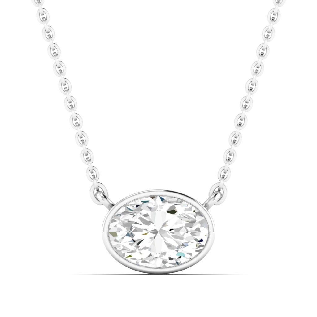 A modern essential. This necklace features a 1.00ct total weight lab grown oval cut diamond in a smooth bezel setting, offering soft curves and brilliant sparkle. Perfect for layering or wearing solo.