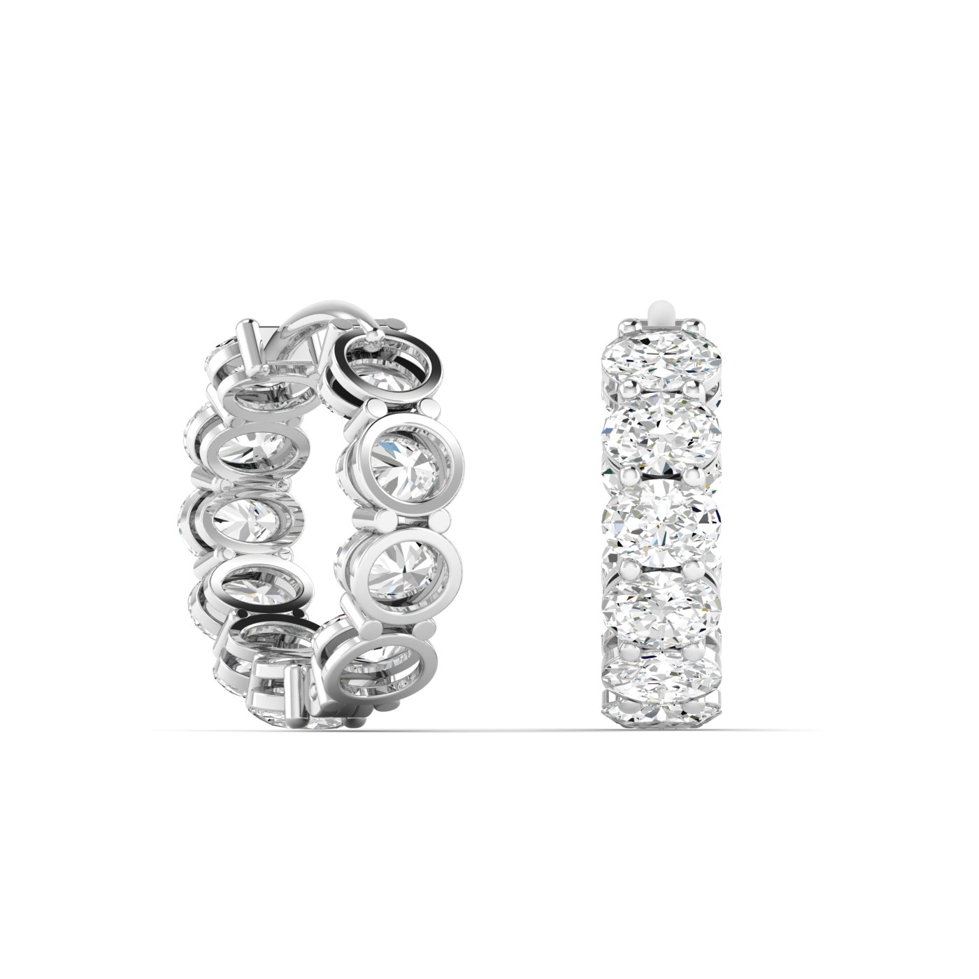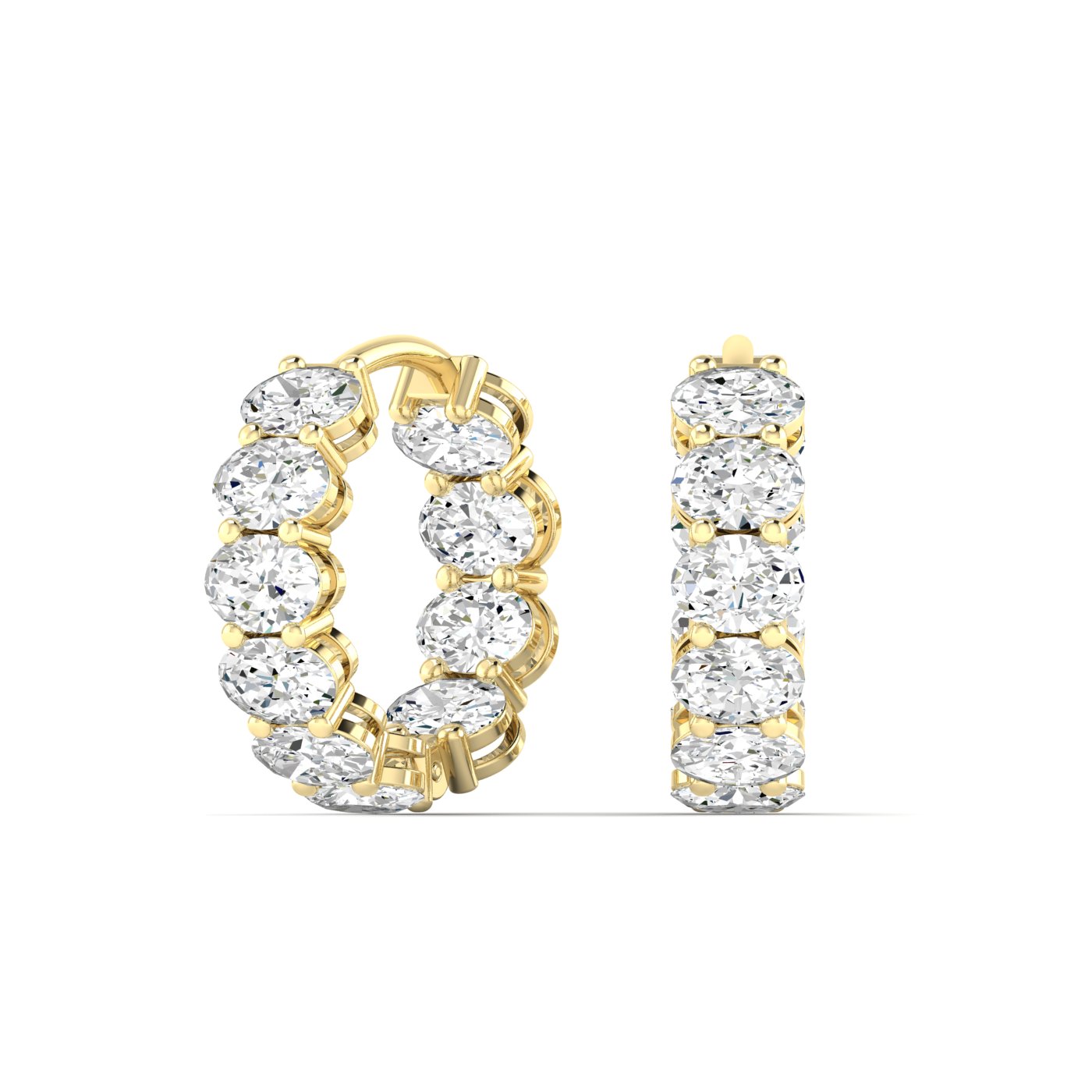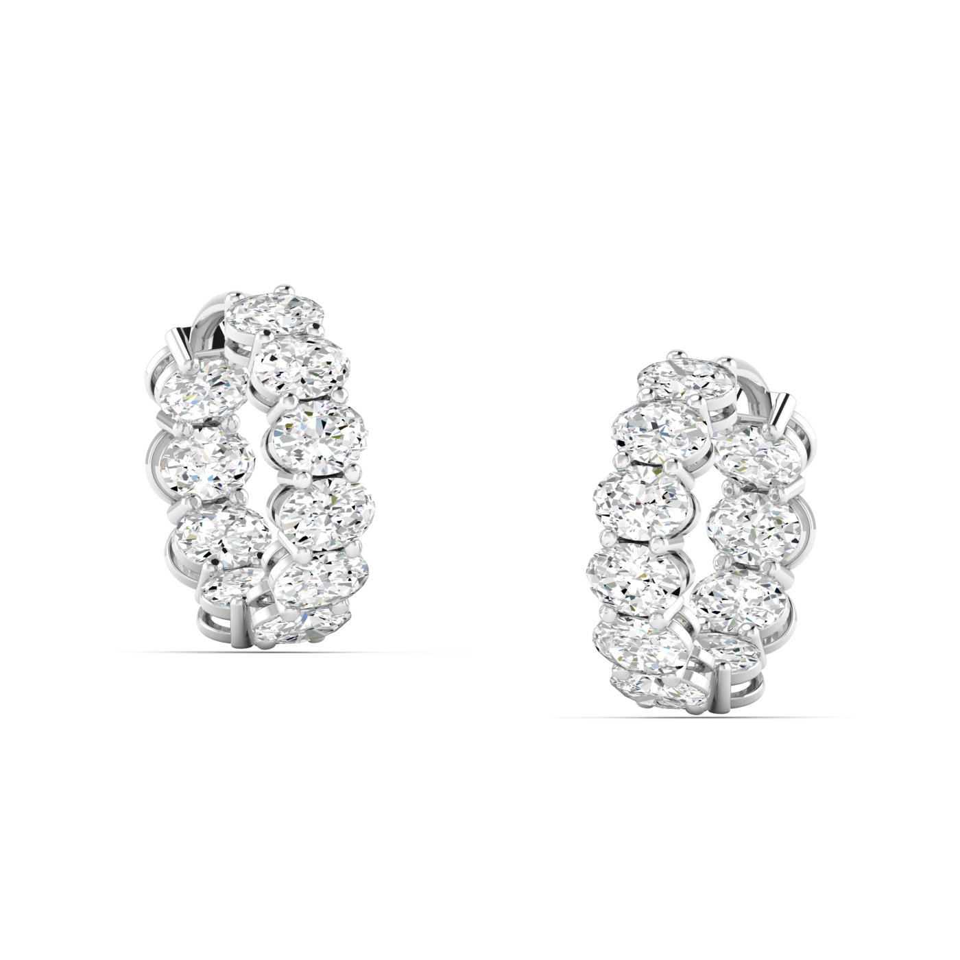 Refined elegance with radiant sparkle. These hoop earrings showcase 4.00ct total weight of lab grown oval diamonds, arranged in an inside-out design that ensures brilliance from every view. The elongated curves of the oval cut give the hoops a graceful silhouette, while the continuous diamonds maximize shine.