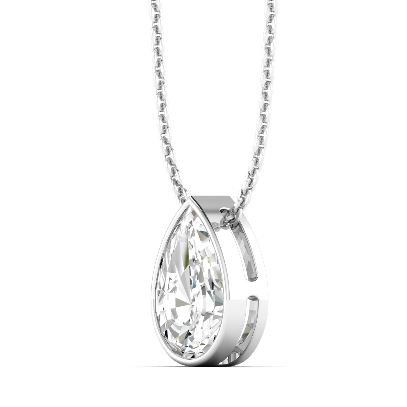 Graceful and versatile. This necklace highlights a 1.00ct total weight lab grown pear cut diamond in a polished bezel setting. The teardrop silhouette adds a feminine touch, making it an everyday favorite.