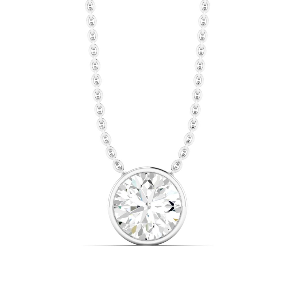 Minimalist sparkle, redefined. This necklace showcases a 1.00ct total weight lab grown round brilliant diamond in a bezel setting for a modern yet timeless look. A versatile piece that pairs effortlessly with any style.