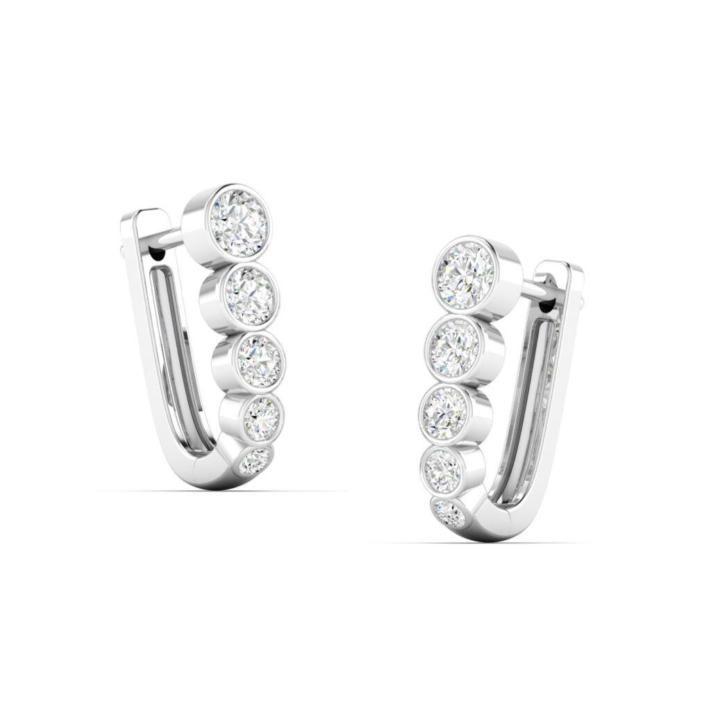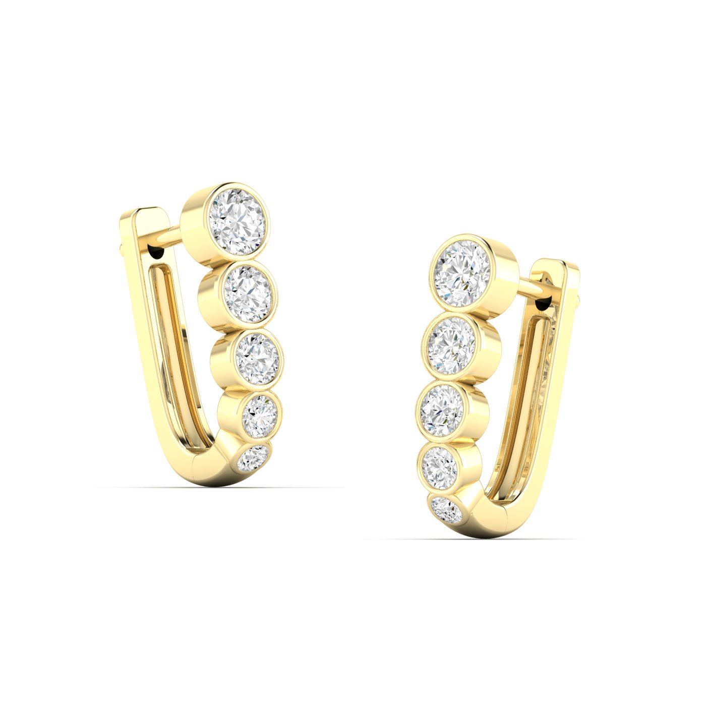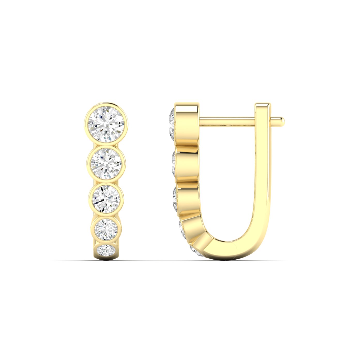 A fresh twist on a classic hoop. These earrings feature 1.00ct total weight of lab grown round brilliant diamonds, each wrapped in a sleek bezel setting along a U-shaped hoop. The design balances everyday wearability with modern elegance, letting the diamonds take center stage while offering a secure, refined finish.