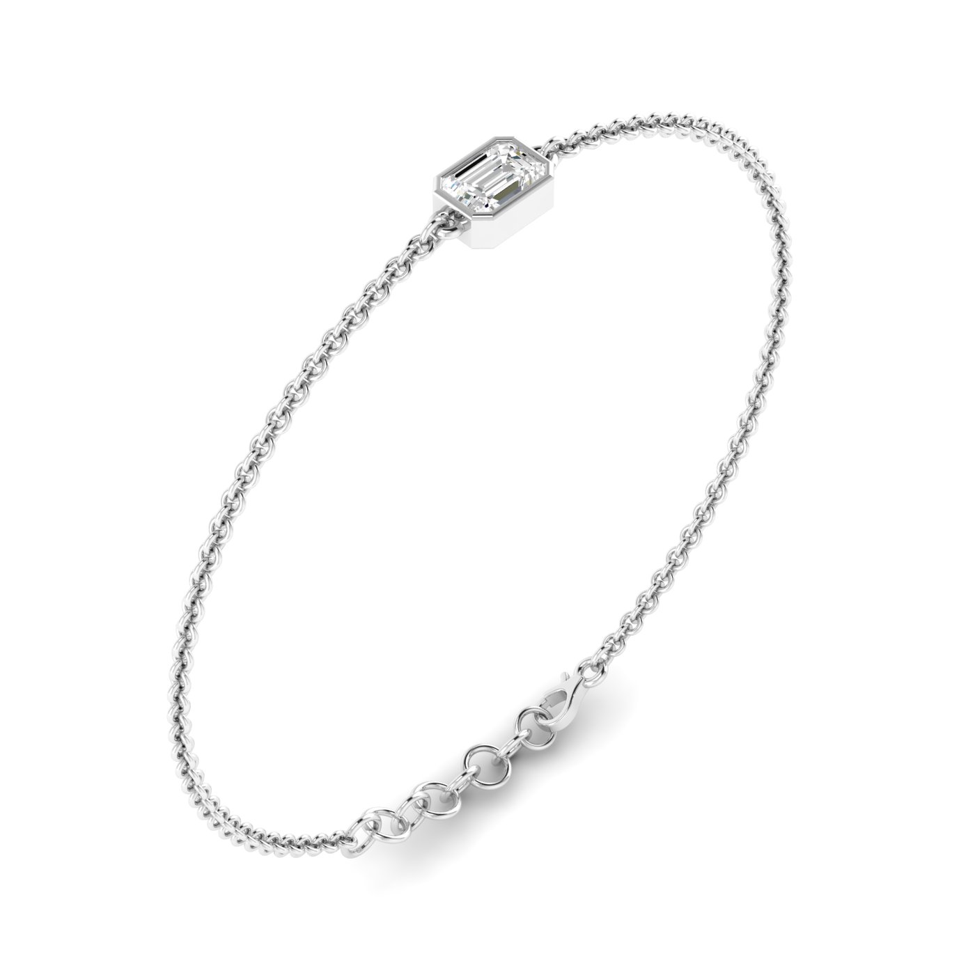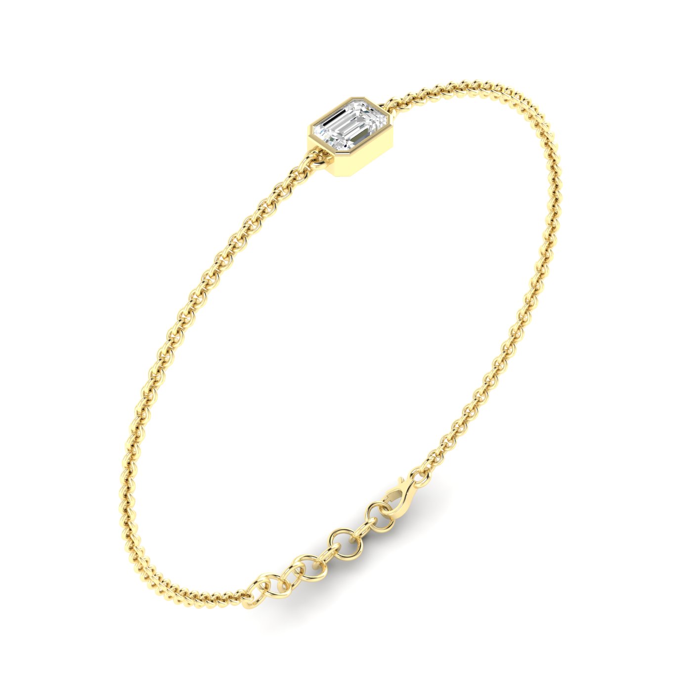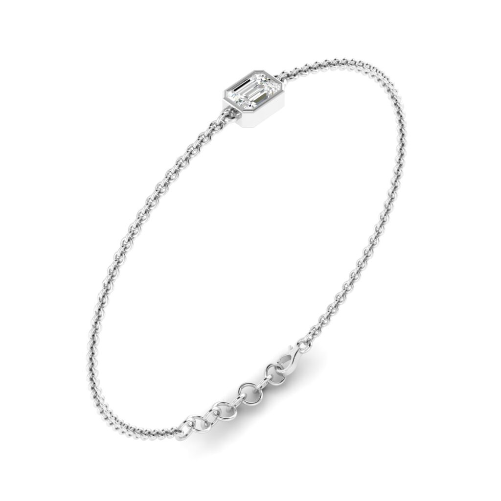 A refined essential, the Single Emerald Bezel Bracelet highlights a 0.50 carat lab grown emerald diamond in a sleek bezel setting. Minimal yet striking, this bracelet is perfect for layering or wearing as a subtle statement of elegance.