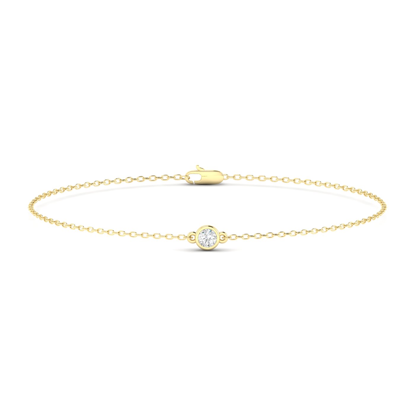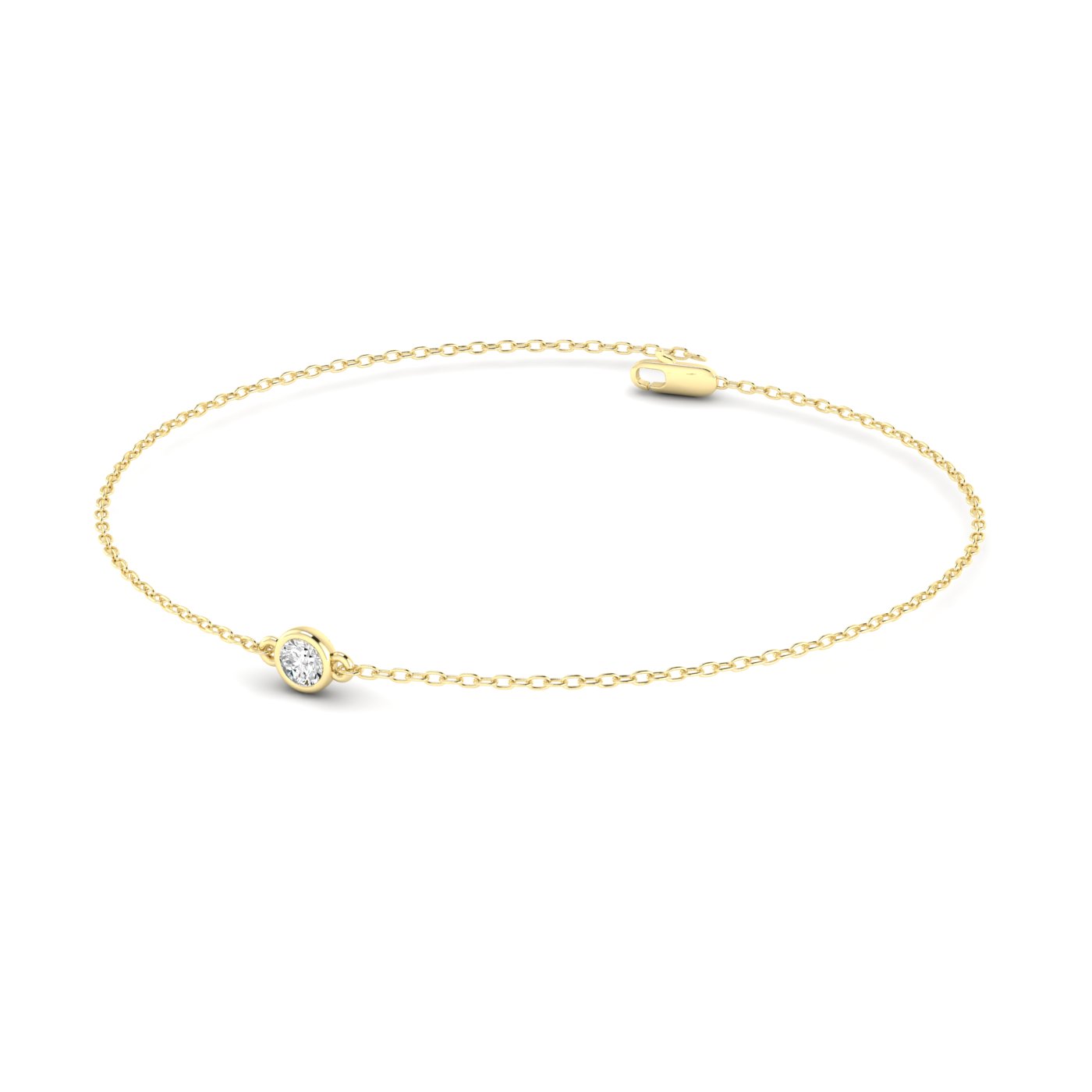 A refined essential, the Single Round Bezel Bracelet highlights a 0.75 carat lab grown round diamond in a sleek bezel setting. Minimal yet striking, this bracelet is perfect for layering or wearing as a subtle statement of elegance.