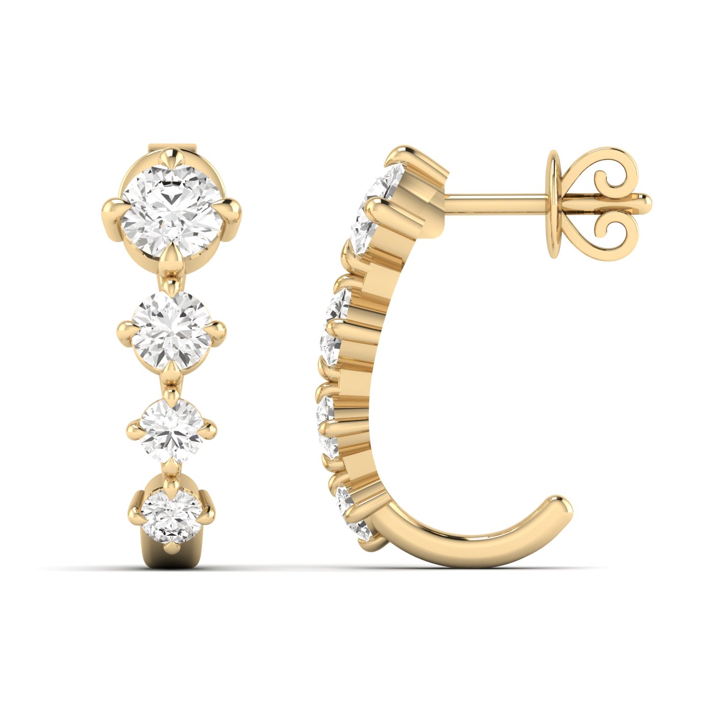 Designed to shine from every angle. These U-shaped hoop earrings feature a bold trio of lab grown round brilliant diamonds—centered with a larger stone flanked by smaller ones—set along the front and inner curve for a full view of sparkle. With 1.60ctw of total diamond weight, they offer both impact and refinement.